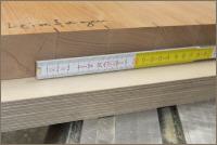 Unten, bei einer handelsüblichen Multiplex-Platte, sind es bei 3 cm Plattendicke 20 Leimfugen übereinander, bei 20 cm Plattenbreite macht das 20 x 20 = 400 cm Länge der Leimfuge im gleichen Plattenquerschnitt!